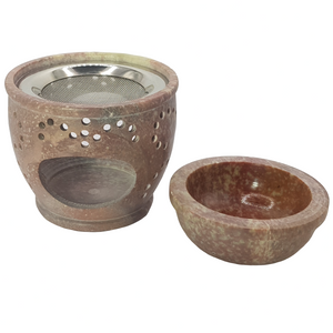 Unsere kleine aber feine Duftlampe aus Speckstein. Speckstein ist schwere Qualität, weswegen die Farbe etwas vom Produktbild abweichen kann. Heller oder dunkler? Diese frage ist ganz dem Kosmos überlassen. Mit der Lampe kommt ein Sieb und eine Schale womit das Erlebnis nicht mehr nur auf Weihrauchharze beschränkt ist. Ätherische Öle können auch genossen werden indem sie zu etwas Wasser in die Schale gegeben werden und über ein Teelicht platziert wird.